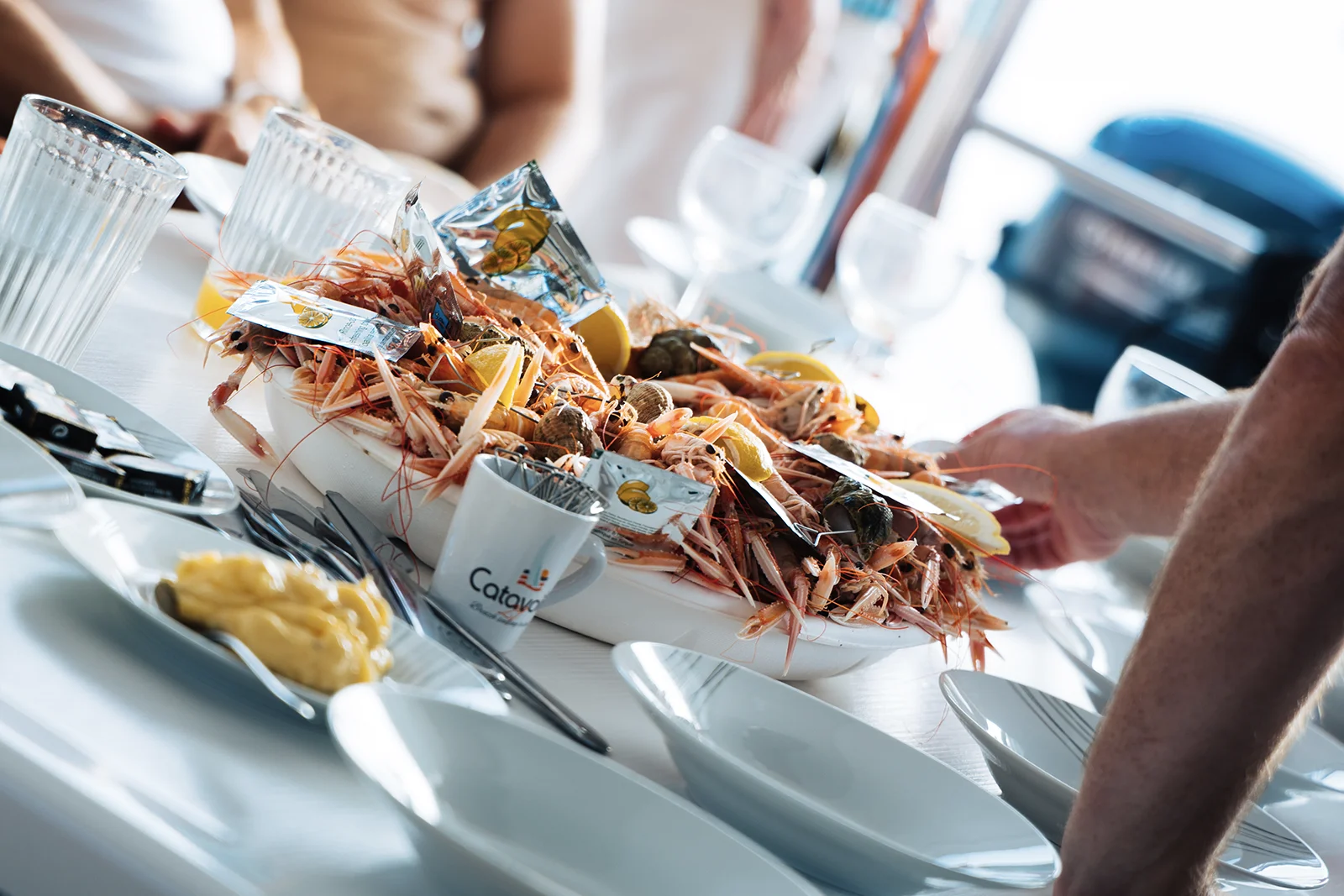 Une option dégustation (15 €) est proposée pour celles et ceux qui souhaitent agrémenter leur expérience à bord : fruits de mer (huîtres, crevettes, langoustines, bigorneaux, bulots…) accompagnés d’un verre de vin blanc.